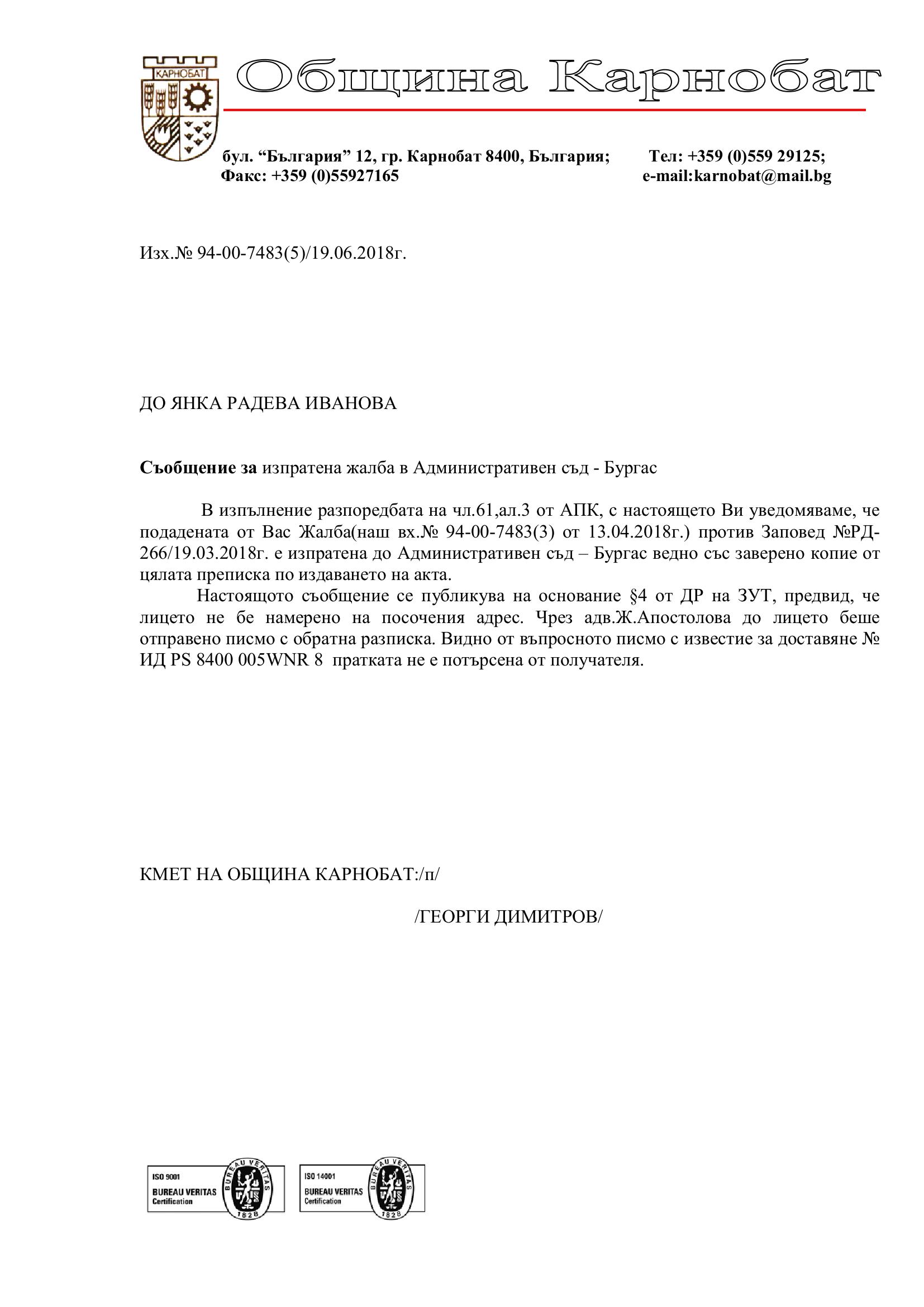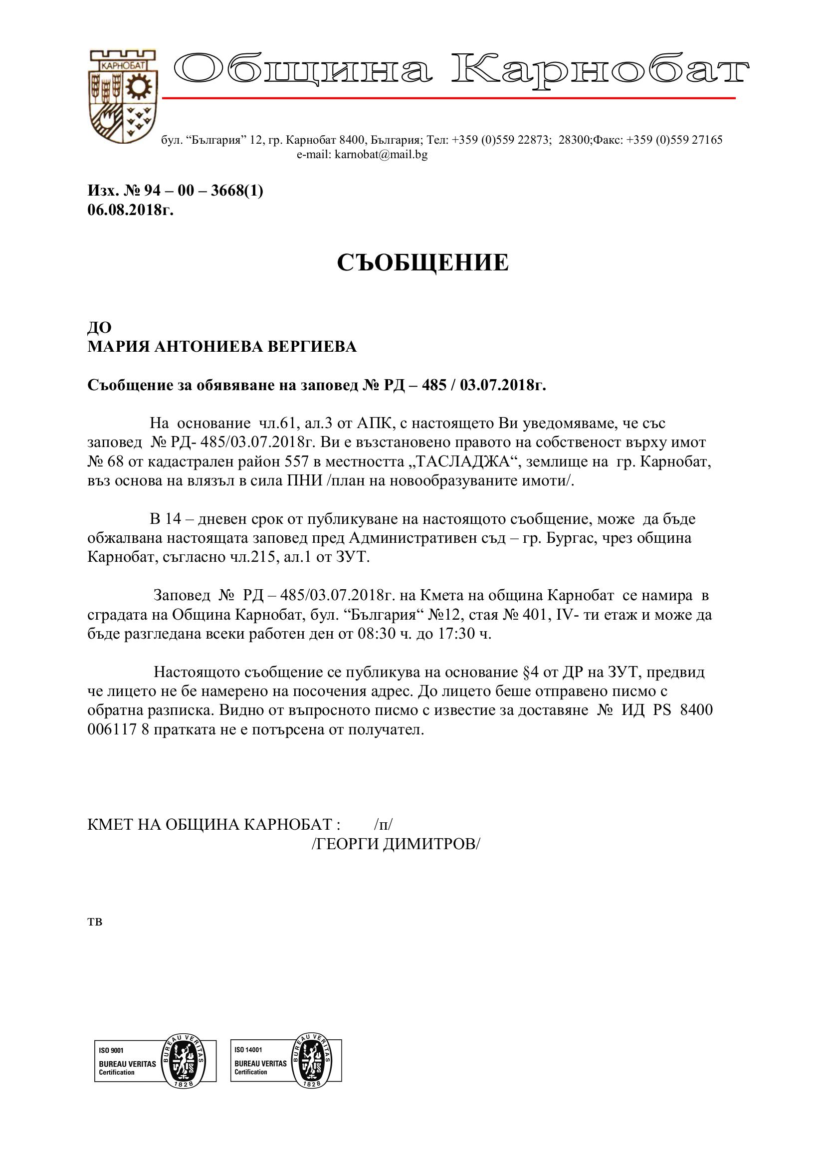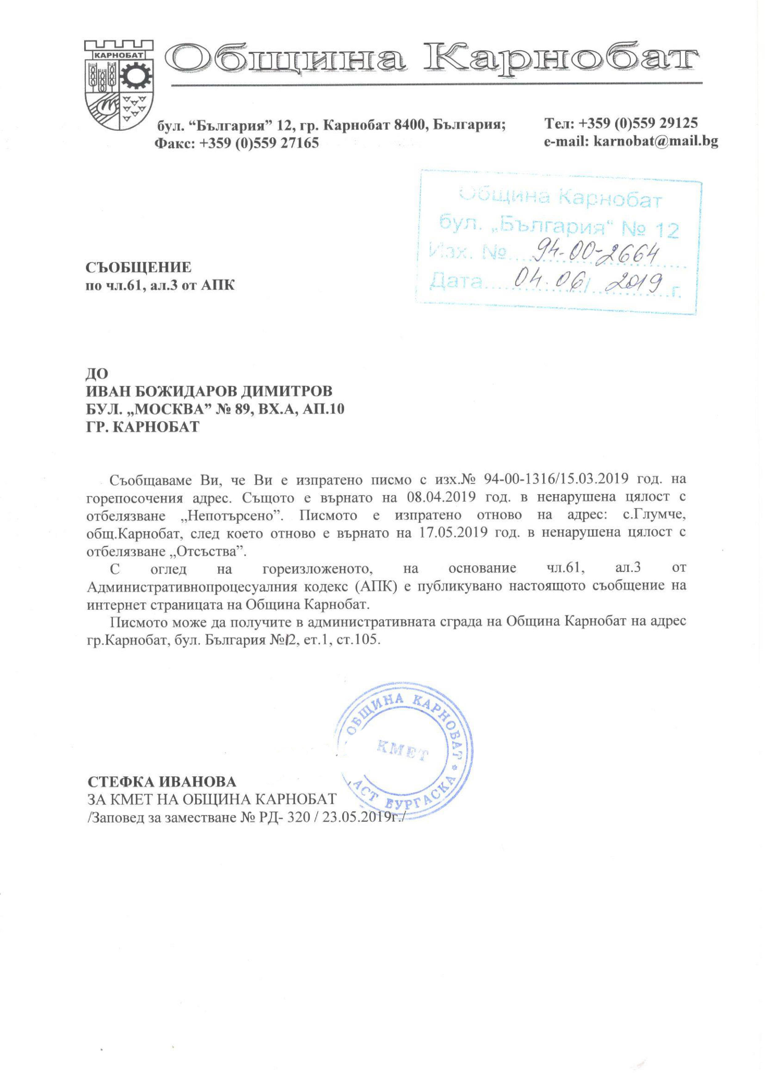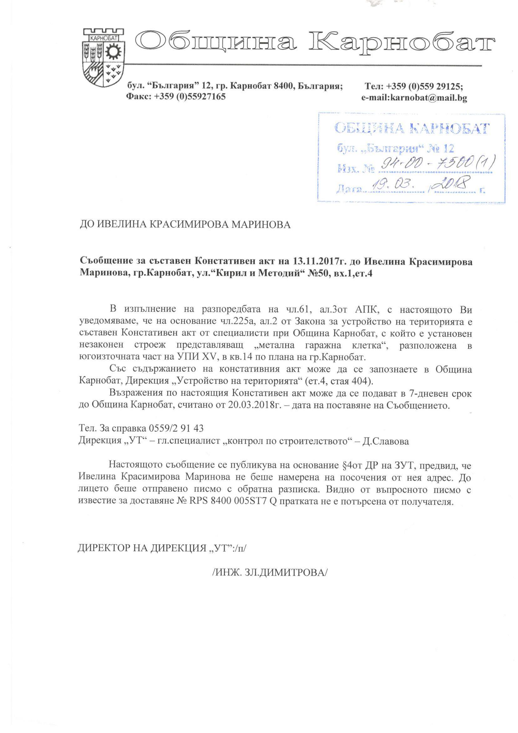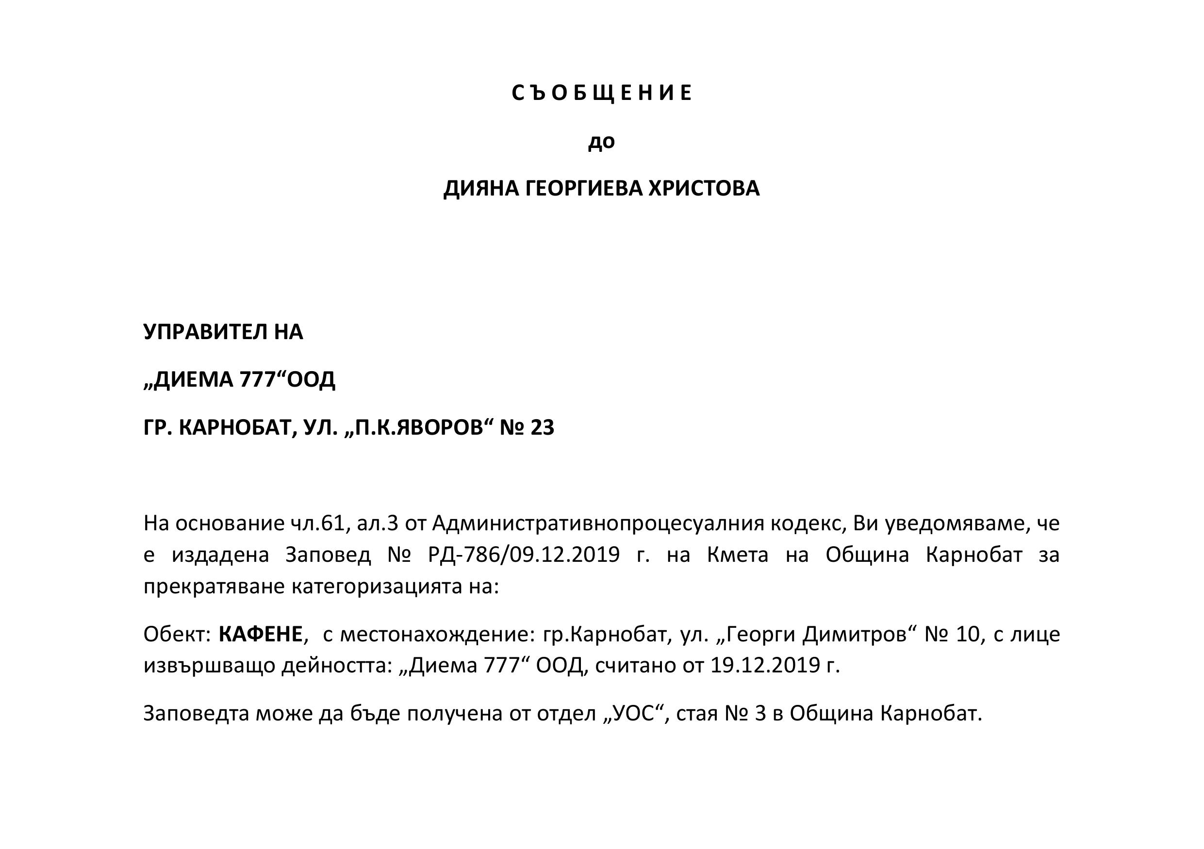 Обявление на основание чл.127, ал.6 от ЗУТ