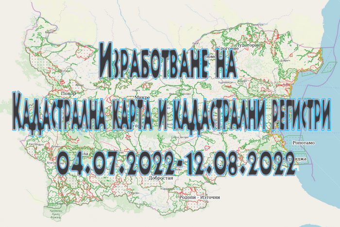 Община Карнобат Обявява, че във връзка  със Заповед № РД—16-50/11.11.2020г. на Изпълнителния директор на Агенция по кадастъра – гр. София, обнародвана в държавен вестник бр.102/01.12.2020г. е открито производство по създаване на кадастрална карта и кадастрални регистри за урбанизираната територия на гр.Карнобат. Правоспособното лице, на което се възлага изработването на кадастралната карта и кадастралните регистри е „Каруел“ – ООД. За изработването на кадастралната карта и кадастралните регистри е необходимо да бъде направено   геодезическо заснемане на имоти, сгради и изработване на схеми на самостоятелните обекти. Всичко това  ЩЕ БЪДЕ ИЗВЪРШЕНО ПО ГРАФИК, съобразно схемата за извършване на  геодезическото заснемане, обявен в сградата на общината  в периода от 04.07.2022г.  до 12.08.2022г.