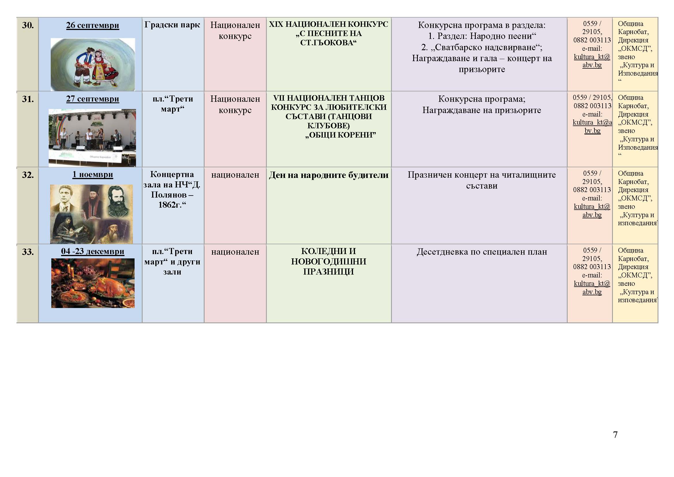 КАЛЕНДАР НА КУЛТУРНИТЕ ПРОЯВИ НА ОБЩИНА КАРНОБАТ ЗА 2026 ГОДИНА