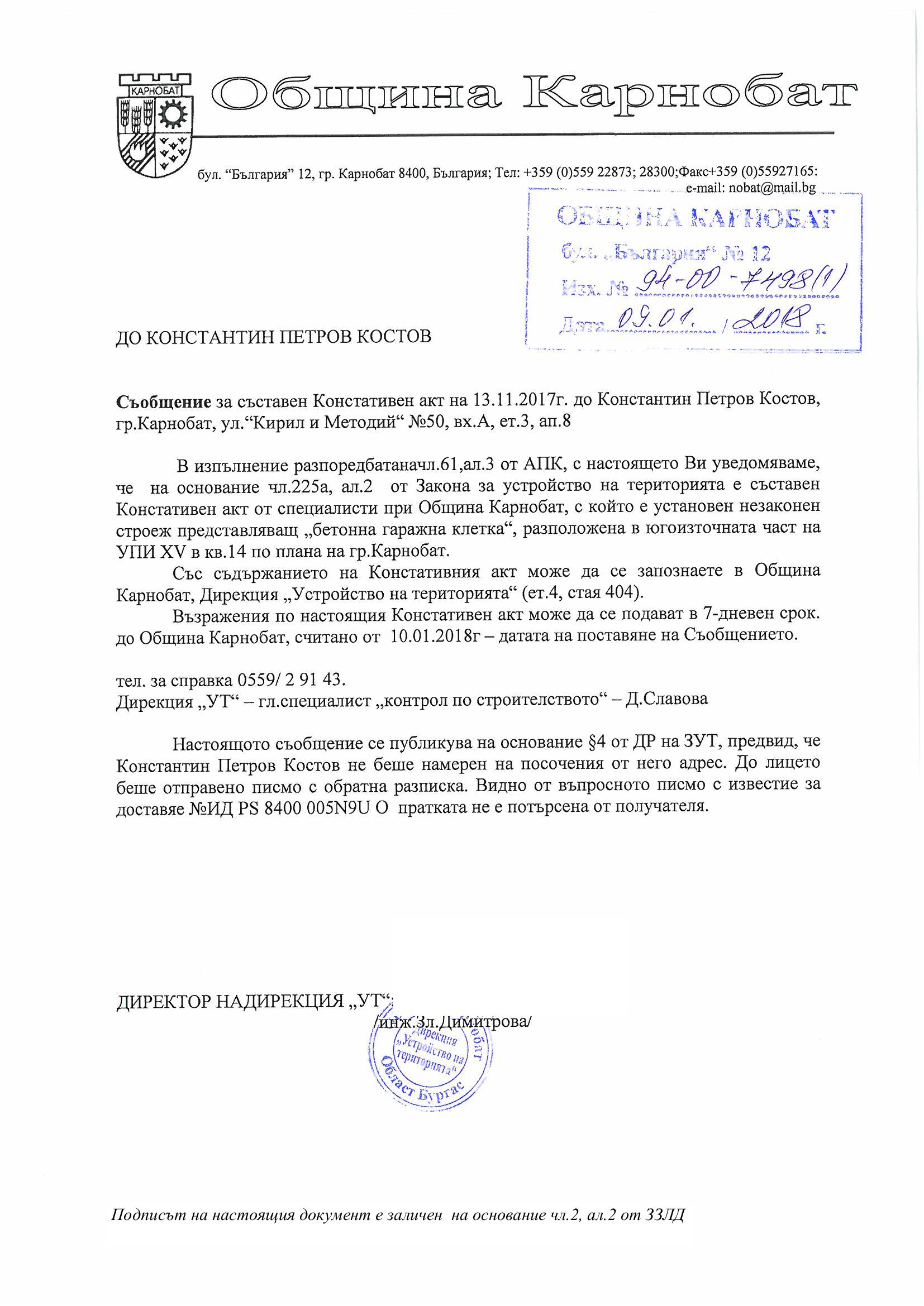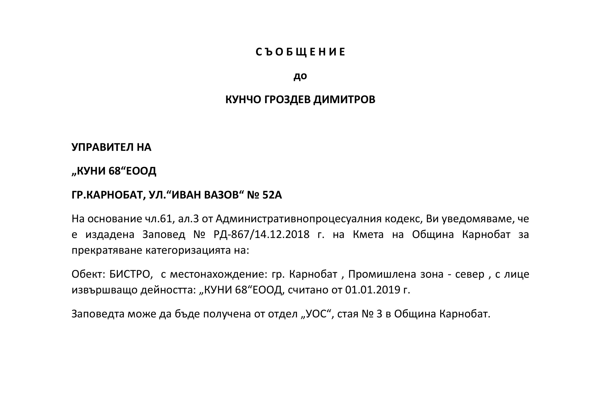 Комисията, назначена със Заповед № РД-80/27.01.2026 г. на Кмета на Община Карнобат, за провеждане на конкурс за длъжността „Финансов контрольор“ в Община Карнобат, уведомява всички допуснати кандидати, че провеждането на конкурса чрез решаване на тест, ще се извърши на 11.02.2026 г. от 10:00 часа в сградата на Община Карнобат, адрес: град Карнобат, бул. „България“ № 12, ет. 2.